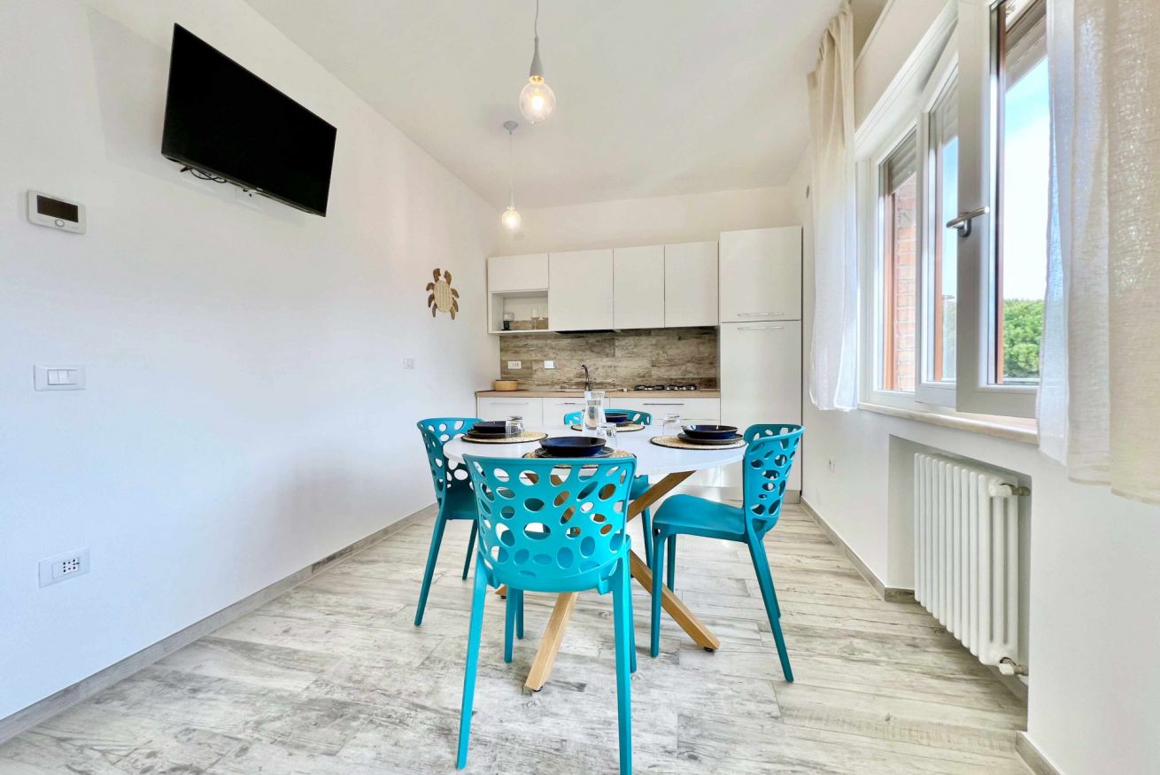 Bilocale a Follonica, completamente ristrutturato e situato in una posizione invidiabile: accanto alla suggestiva pineta di Levante, a pochi passi dalla spiaggia e comodo a tutti i principali servizi. L'appartamento si trova al terzo piano di una palazzina servita di ascensore ed è composto da luminoso soggiorno con angolo cottura e divano letto matrimoniale, da cui si accede a un gradevole terrazzino attrezzato per pranzi e cene all’aperto (non è presente la tenda da sole). La camera matrimoniale, spaziosa e accogliente, dispone anch’essa di un secondo terrazzino privato. Il bagno, completo di doccia, è dotato di aspiratore per garantire una buona ventilazione (non è finestrato). L'appartamento è inoltre dotato di aria condizionata e Wi-Fi, per garantire il massimo comfort anche durante i soggiorni più lunghi.