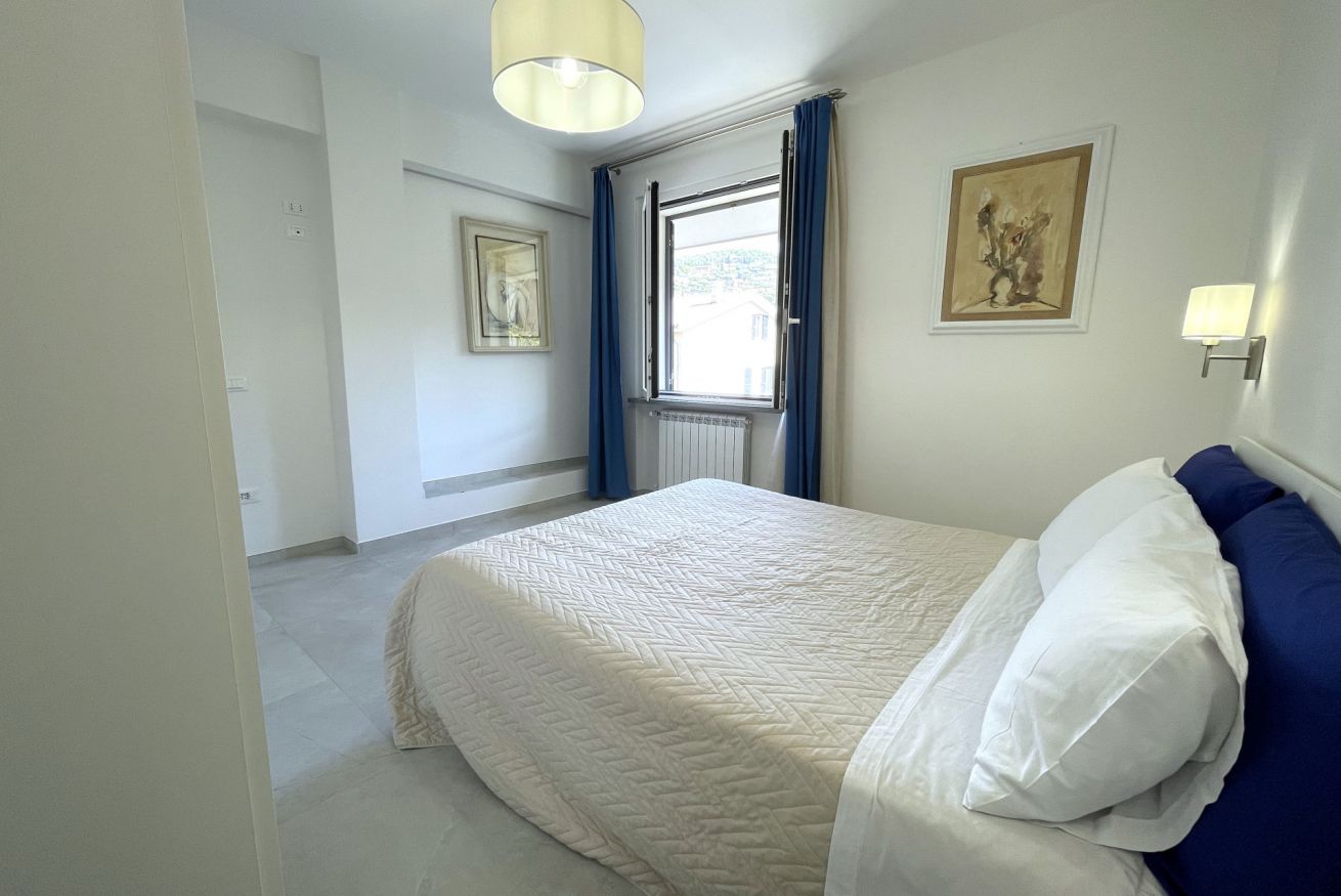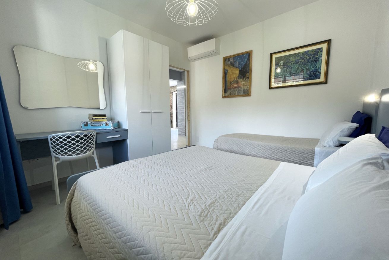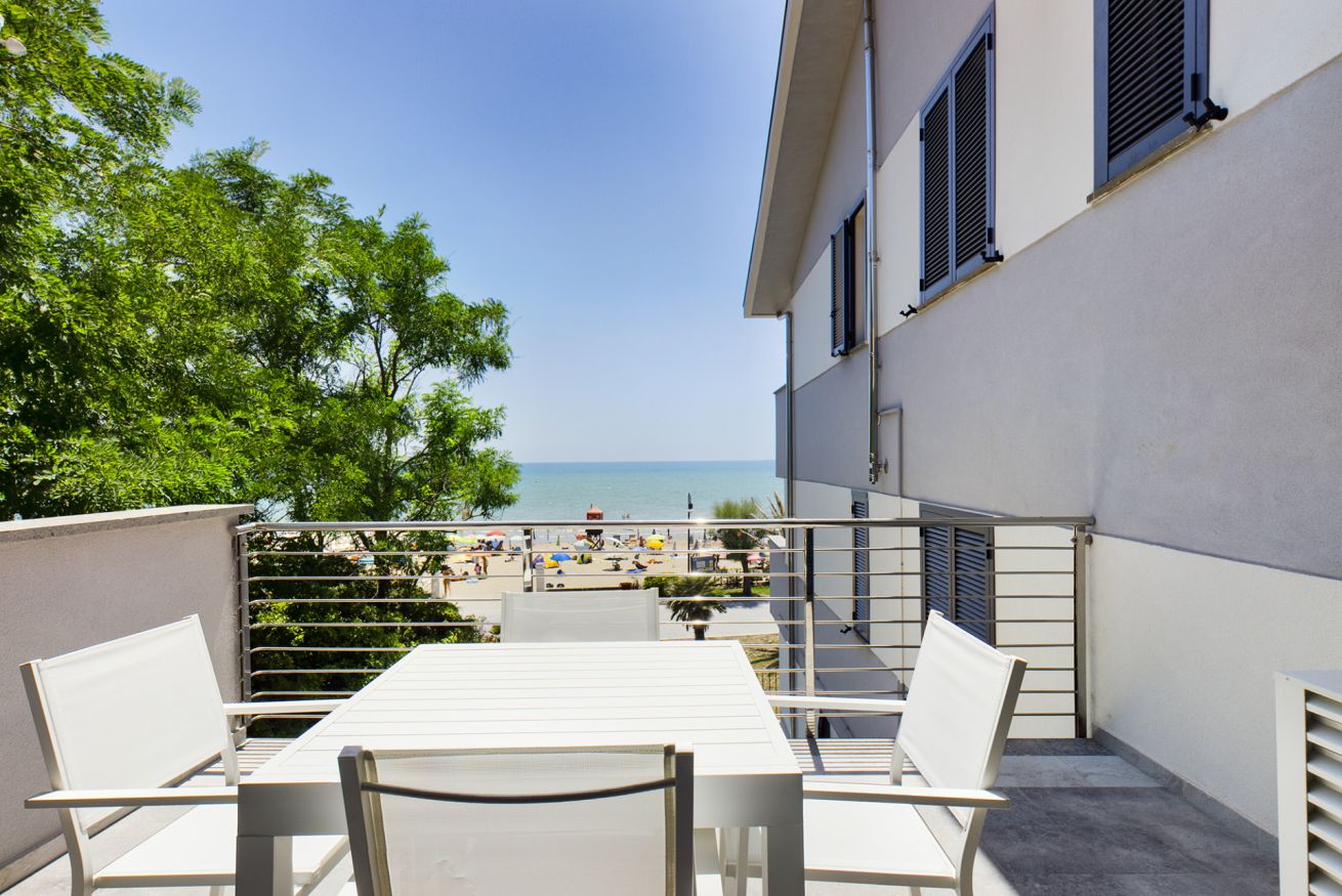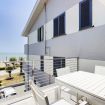 L'appartamento, centralissimo e comodo, presenta un moderno soggiorno openspace con angolo cottura completamente attrezzato. Una grande vetrata vista mare conduce al terrazzo riparato da una comoda tenda da sole, che è l’ideale per pranzi e cene all'aperto. Le due accoglienti camere da letto offrono una sistemazione flessibile: una con letto matrimoniale e l'altra con letto matrimoniale e un letto singolo. I due spaziosi bagni sono entrambi dotati di doccia, uno con finestra per una ventilazione naturale e uno con aspiratore.