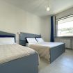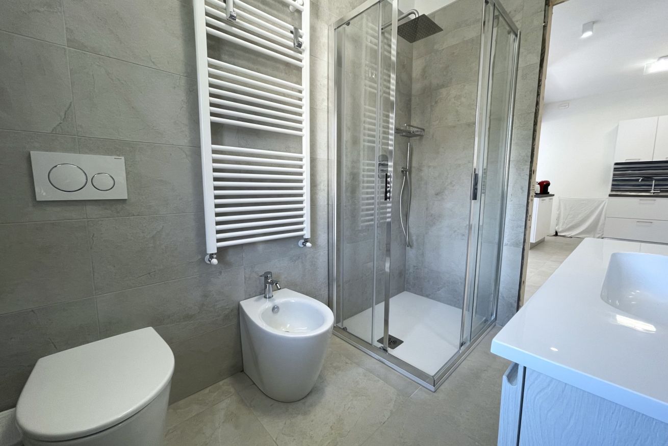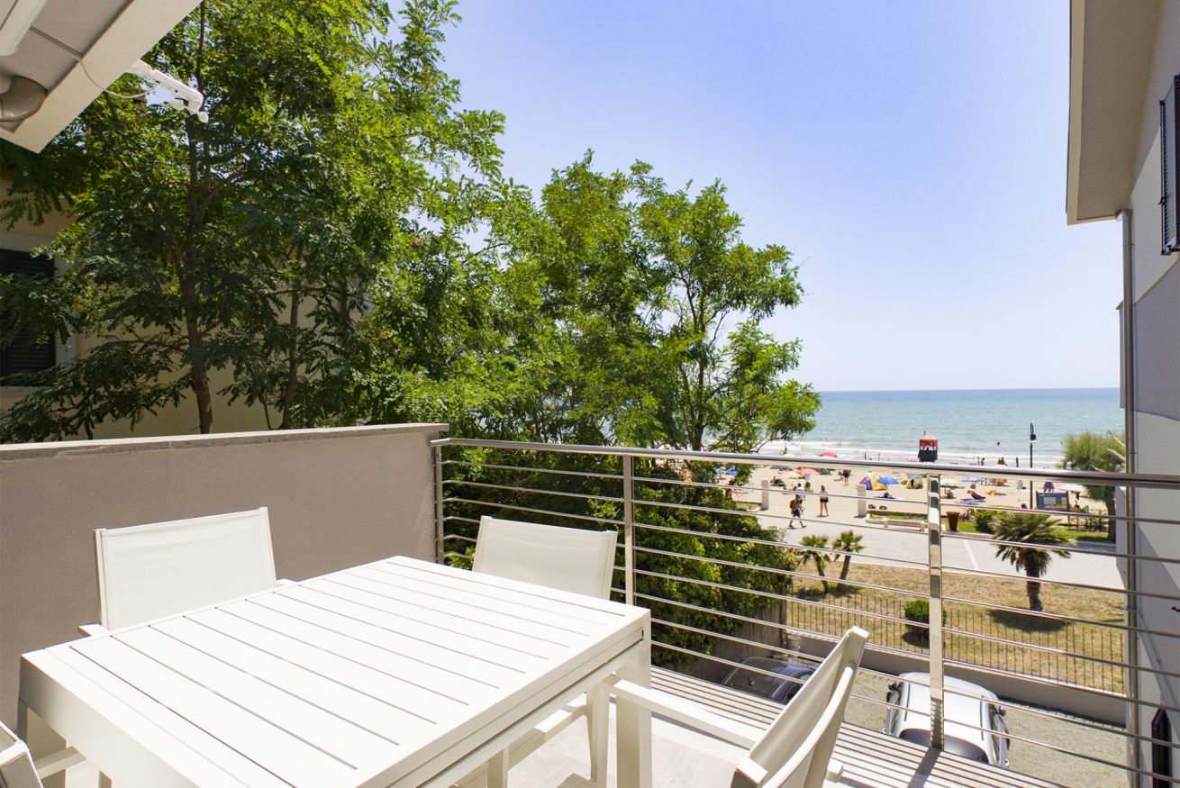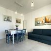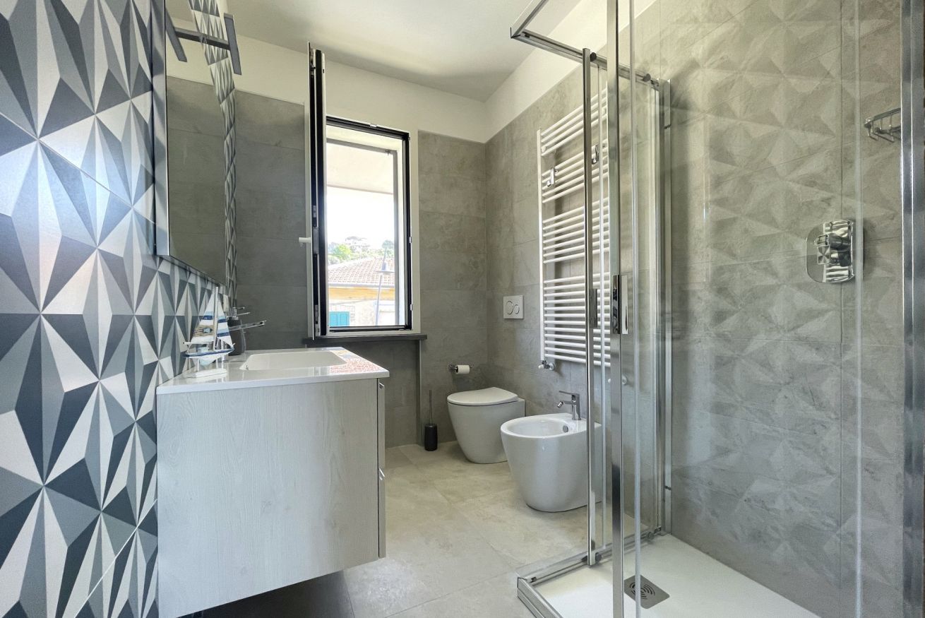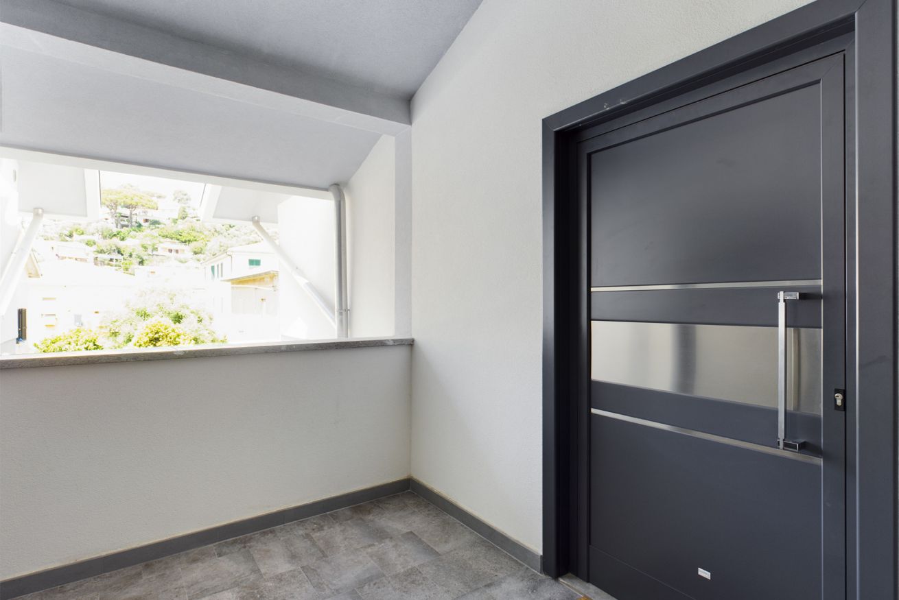 L'appartamento, centralissimo e comodo, presenta un moderno soggiorno openspace con angolo cottura completamente attrezzato. Una grande vetrata vista mare conduce al terrazzo riparato da una comoda tenda da sole, che è l’ideale per pranzi e cene all'aperto. Le due accoglienti camere da letto offrono una sistemazione flessibile: una con letto matrimoniale e l'altra con letto matrimoniale e un letto singolo. I due spaziosi bagni sono entrambi dotati di doccia, uno con finestra per una ventilazione naturale e uno con aspiratore.