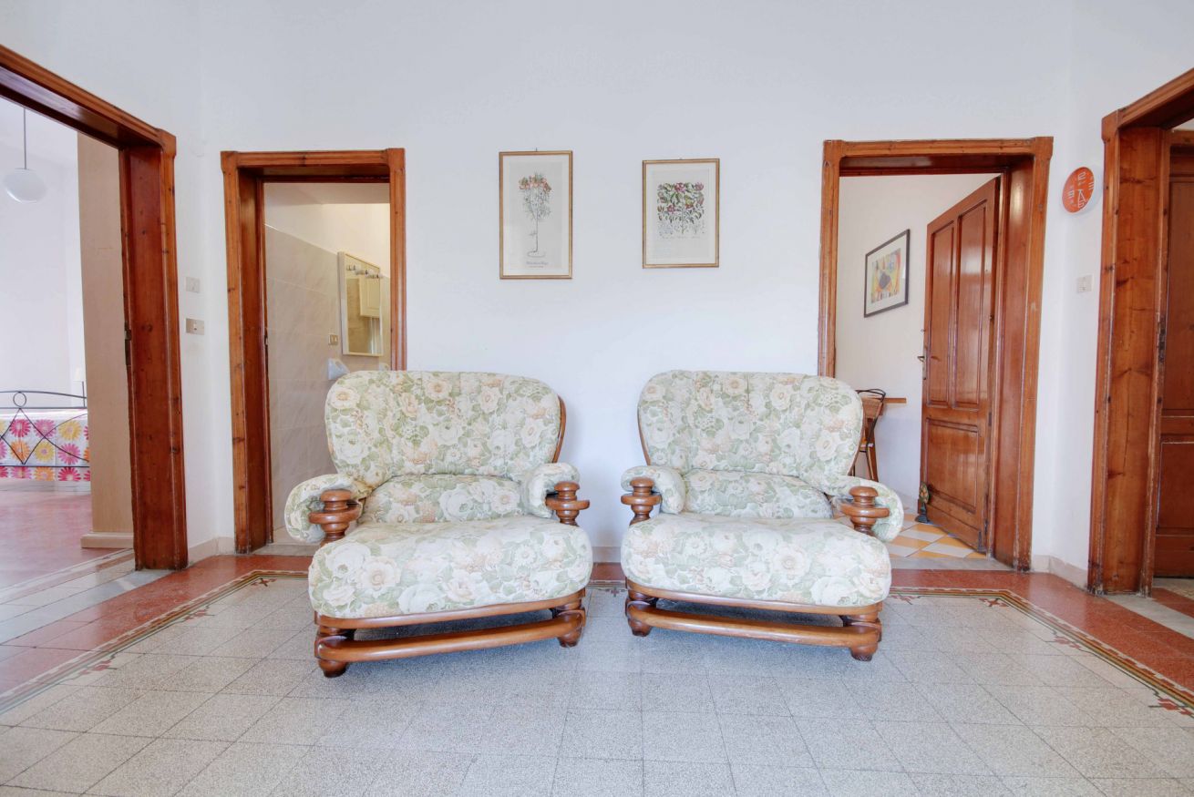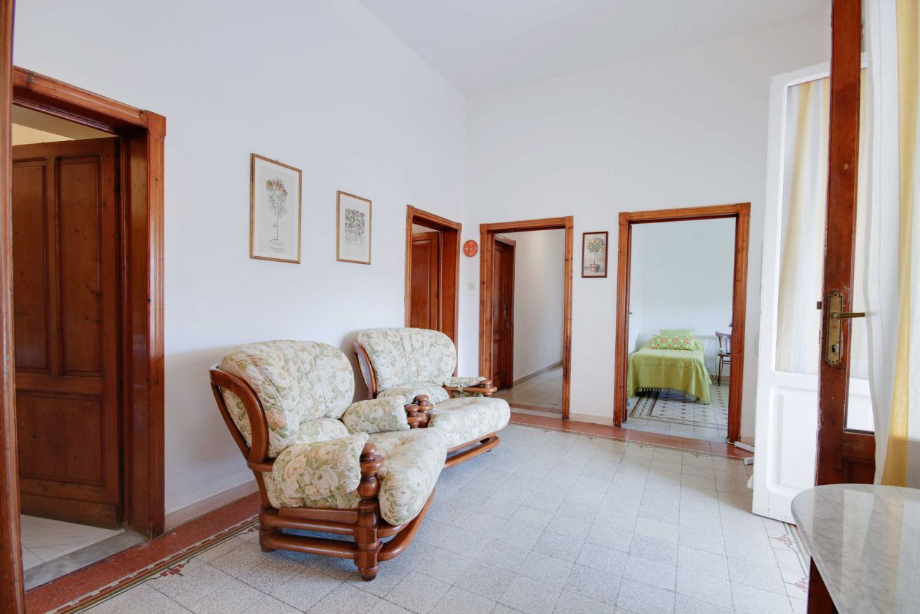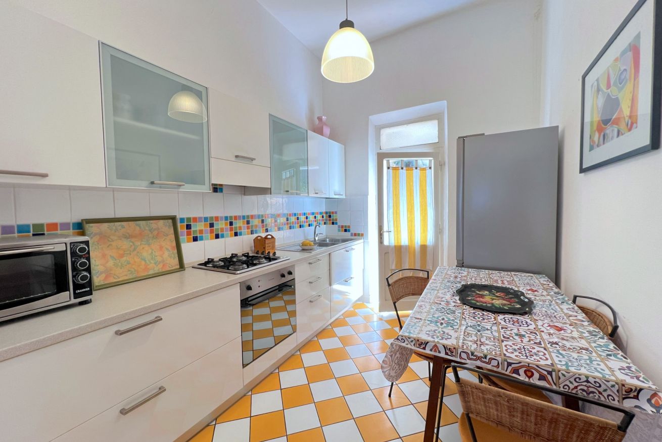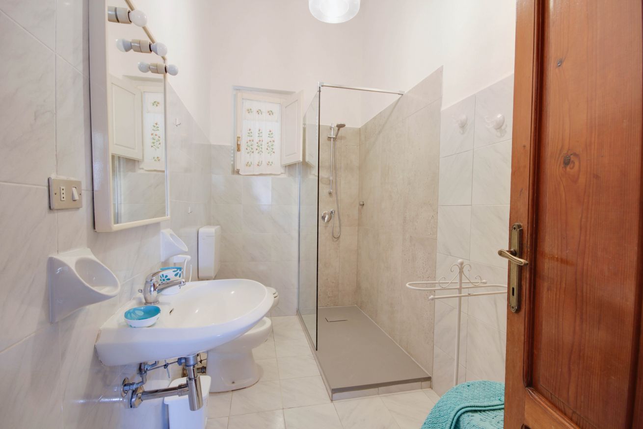 Ampio e accogliente appartamento, situato al primo piano di un piccolo edificio composto da soli tre appartamenti, vicinissimo al centro e a soli 150 metri dal mare. L'appartamento è composto da soggiorno luminoso che apre sulla terrazza allestita per mangiare all'aperto e coperta da tenda, cucina con tavolo e sedie, frigo/freezer, forno/fornelli a gas bombola e accesso a spazio esterno sul retro con lavatrice e stenditoio, due camere matrimoniali di cui una con letto singolo, una camera con due letti singoli, un bagno con doccia, e un piccolo spazio esterno al piano terra.