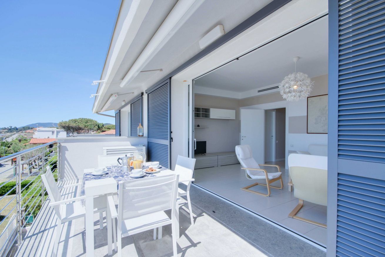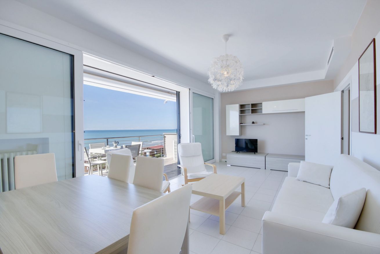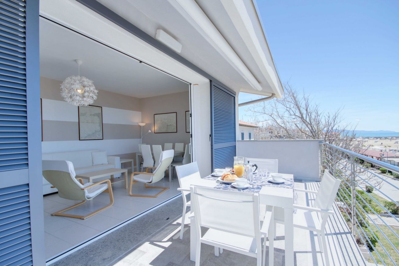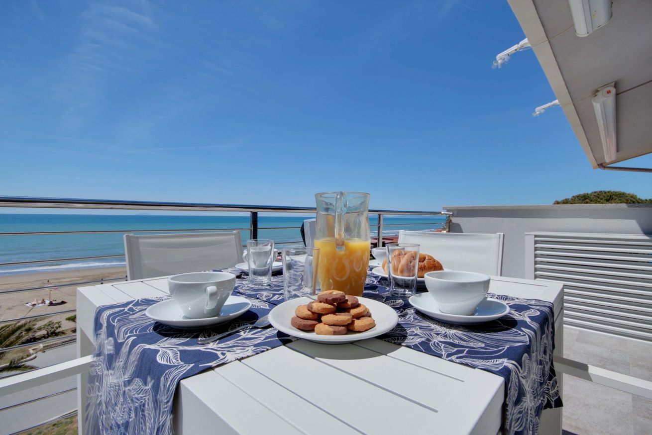 Appartamento con vista mozzafiato, direttamente sulla passeggiata del lungomare di Via Roma, a soli 20 metri dalla spiaggia con posto auto e climatizzatore. Si trova al terzo ed ultimo piano (senza ascensore), ma con una delle viste panoramiche migliori di tutto il litorale, con una vista meravigliosa dall'Argentario all'isola d'Elba. L'appartamento di 70 mq. circa è composto da ingresso con comodo armadio, soggiorno con terrazza allestita per mangiare all'aperto e con tenda da sole elettrica che si riavvolge automaticamente quando il vento è troppo forte (divano letto singolo in soggiorno), cucinotto, camera matrimoniale, camera con tre letti singoli, bagno con doccia (senza finestra ma con aspiratore), ed un posto auto in corte condominiale. Dalla casa si accede direttamente al lungomare tramite cancello pedonale, senza dover attraversare strade trafficate o fare il giro dell'isolato: potrai portare i tuoi bimbi al mare in assoluta sicurezza. L'appartamento dispone di wifi e climatizzatore centralizzato (la temperatura viene regolata da un termostato che assicura la stessa temperatura in ogni stanza).