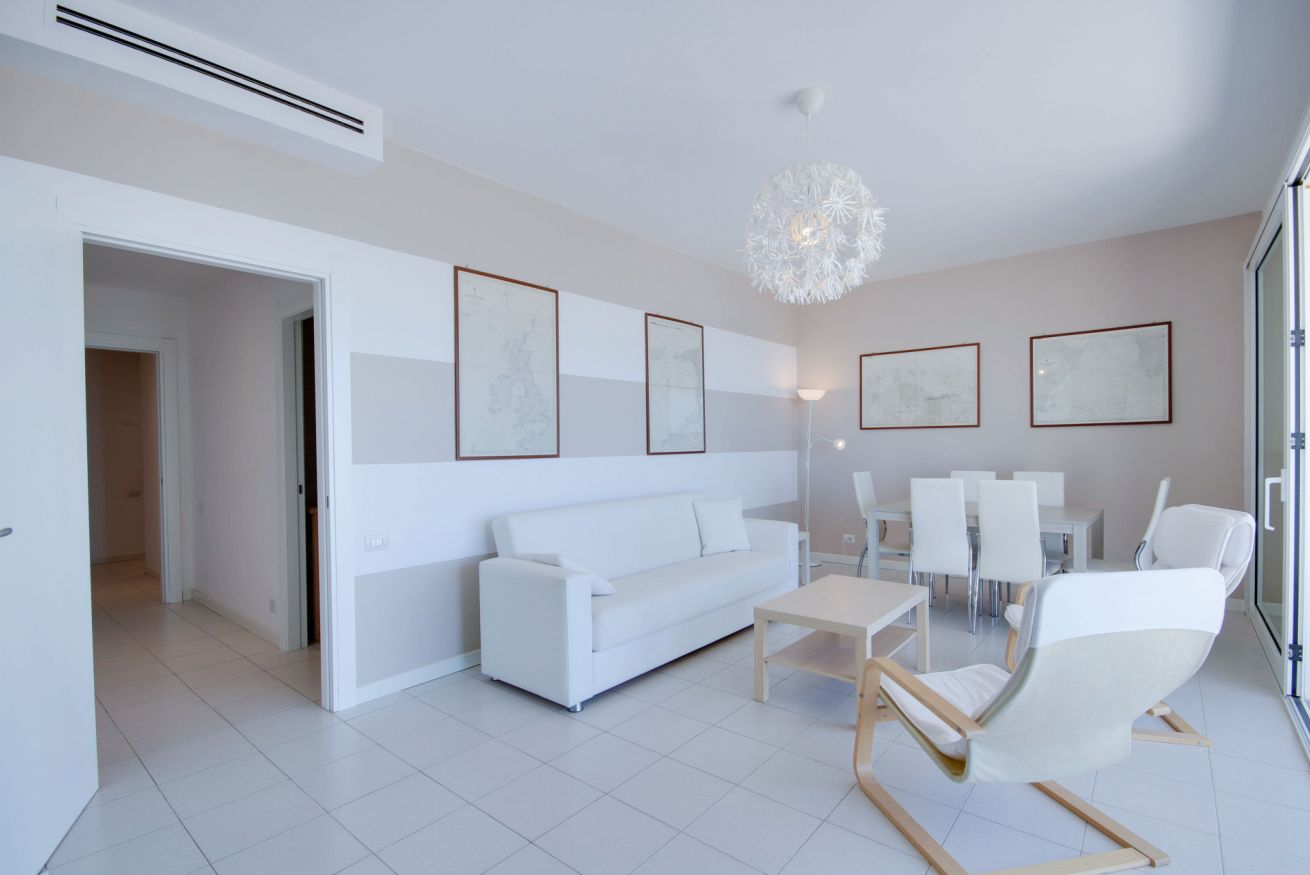 L'appartamento ha tutte le finestre con affaccio sul lato del condominio (non sulla strada principale) e sul lungomare pedonale.