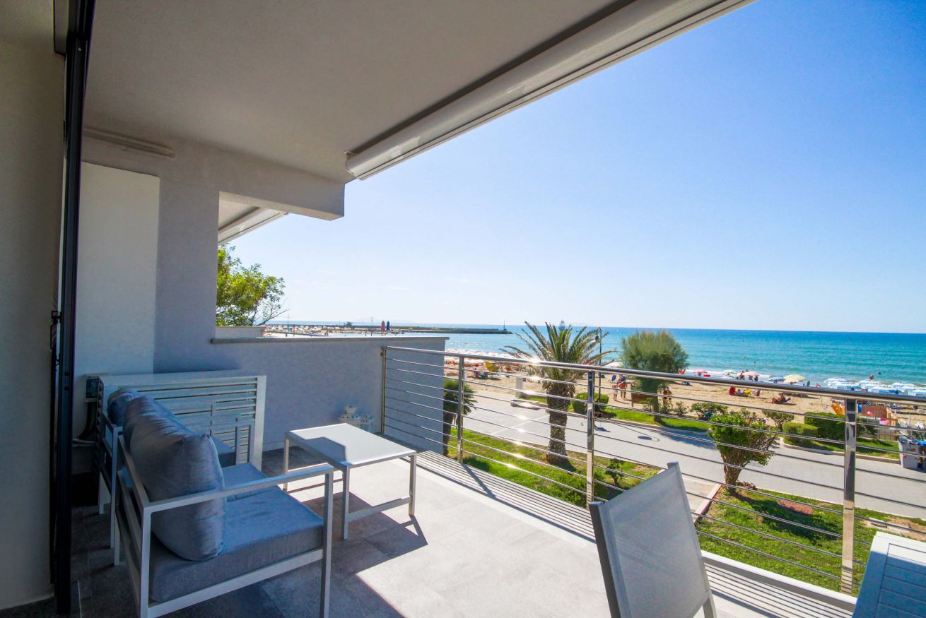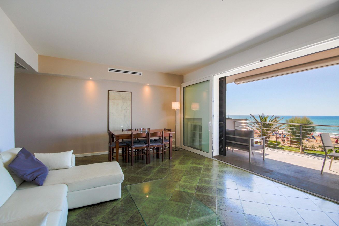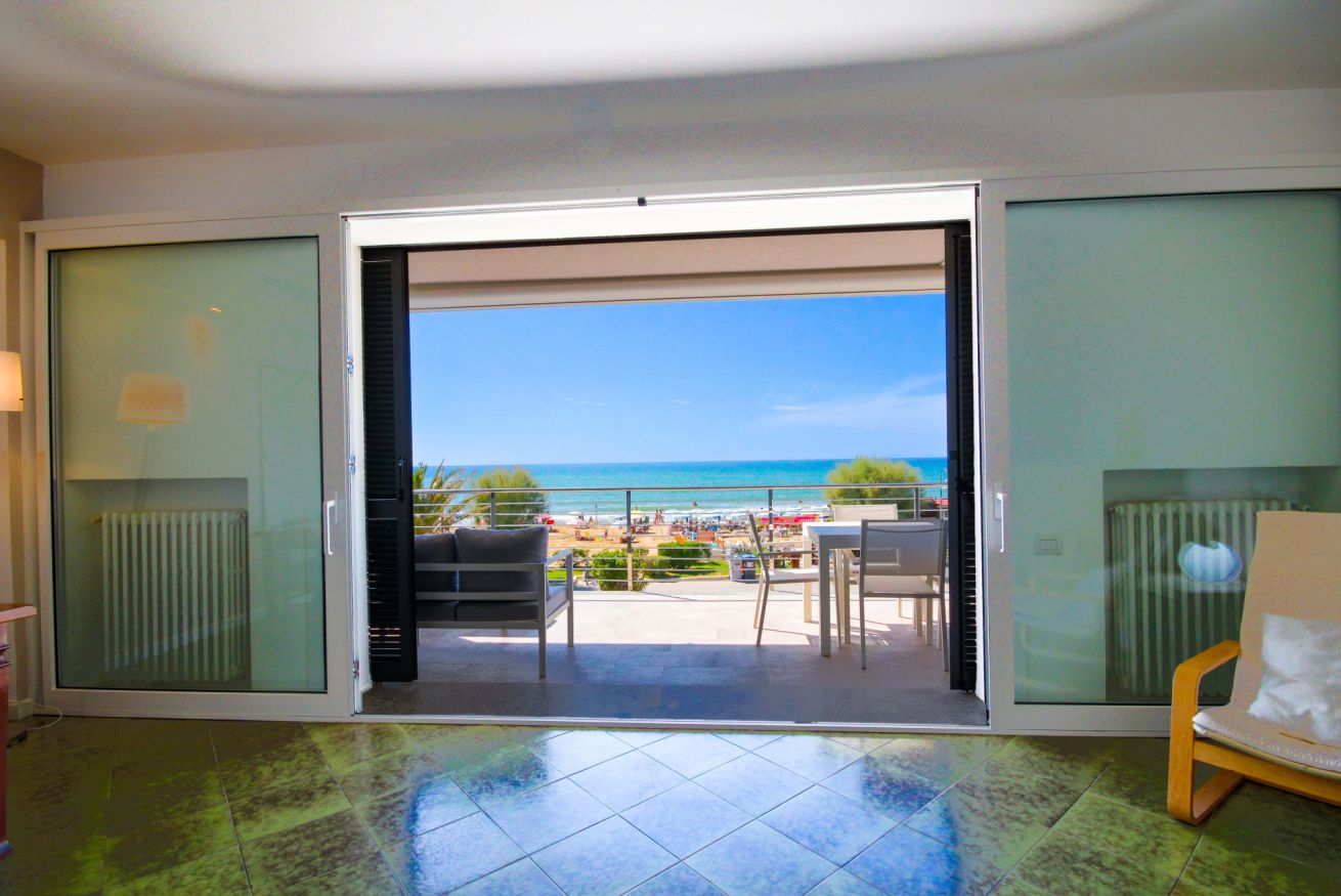 L'appartamento ha tutte le finestre con affaccio sul lato del condominio (non sulla strada principale) e sul lungomare pedonale.