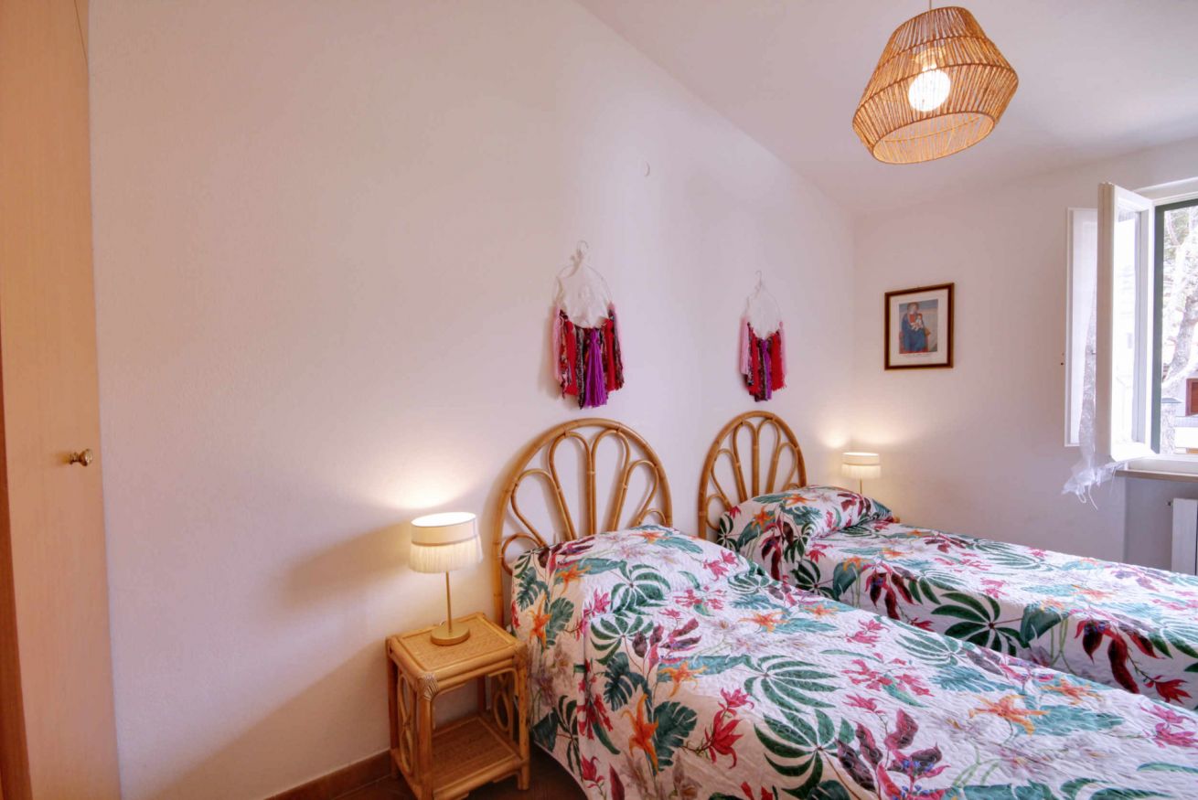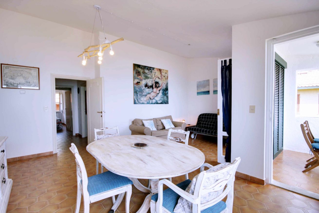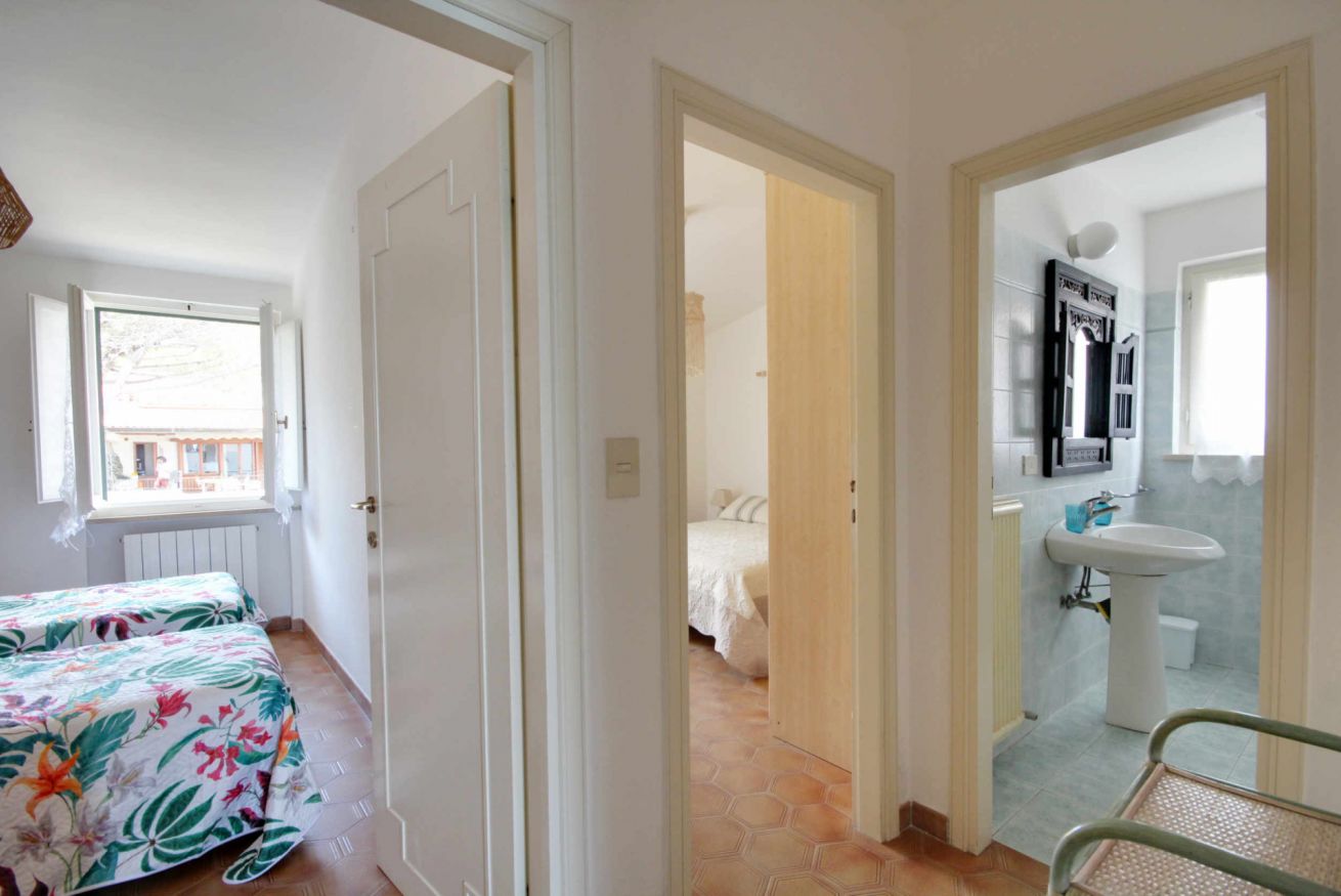 L'appartamento in affitto è situato al primo e ultimo piano di una villetta fronte mare, con accesso tramite scala interna condivisa. Il soggiorno è luminoso e arredato con gusto, dotato di tavolo, sedie, divano letto matrimoniale e TV, con ampia finestra vista mare e accesso ad un balcone attrezzato con tavolo e sedie. La cucina separata è ristrutturata e completa di lavastoviglie, forno, frigo/freezer, microonde e macchina da caffè a capsule, inoltre dalla cucina si accede ad un balcone di servizio con lavatrice. Le due camere da letto sul retro affacciano su una corte privata e sono dotate di ampie finestre che rendono molto luminose le stanze. Il bagno ha un pratico box doccia. L'appartamento include un posto auto scoperto nella corte privata e offre connessione wifi veloce e illimitata. La posizione è tranquilla, con accesso diretto al mare attraverso un vialetto privato. Ideale per chi cerca una residenza confortevole in un suggestivo contesto marino.