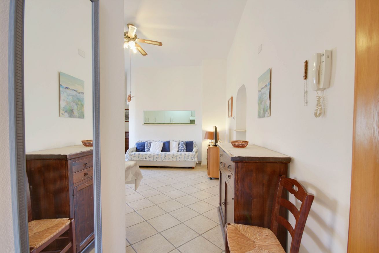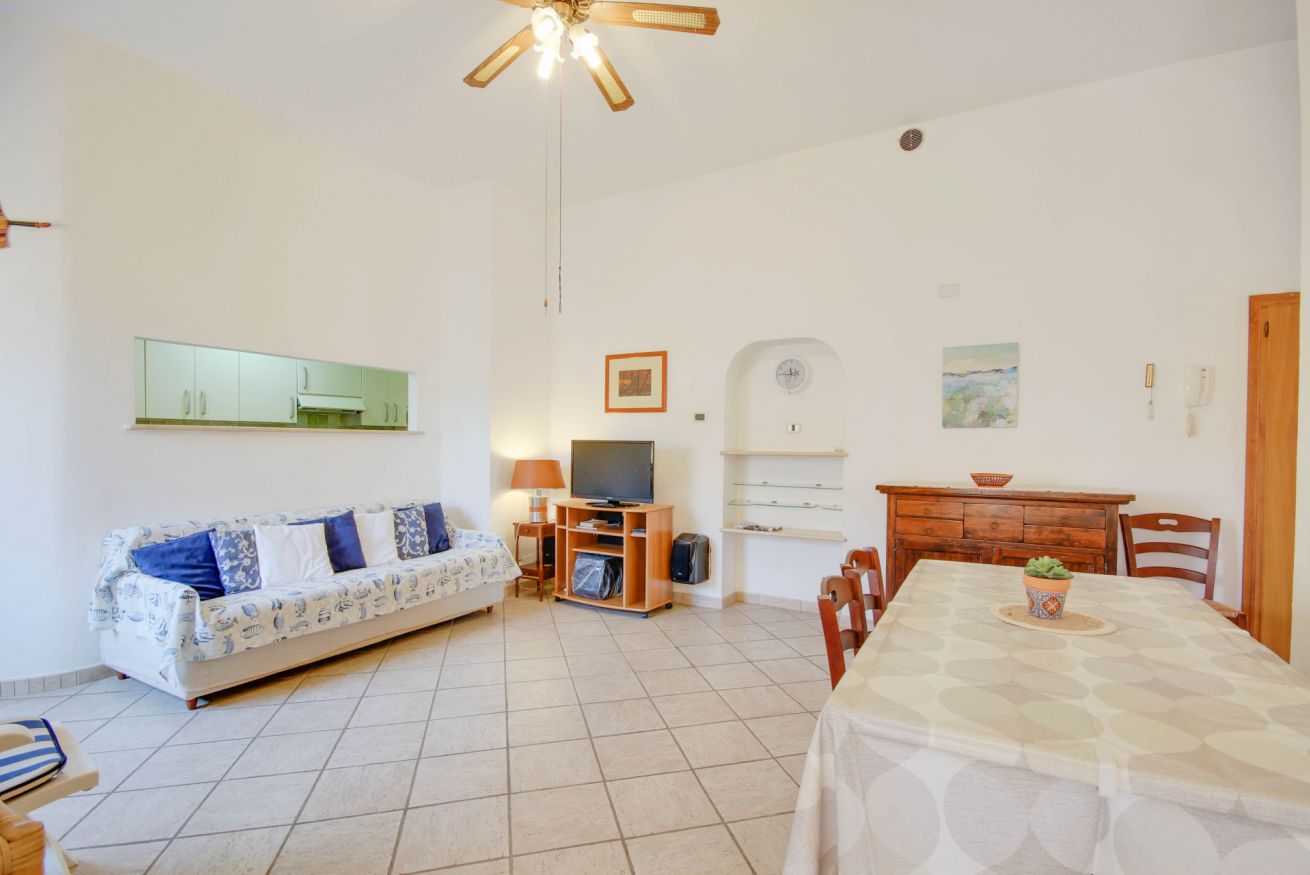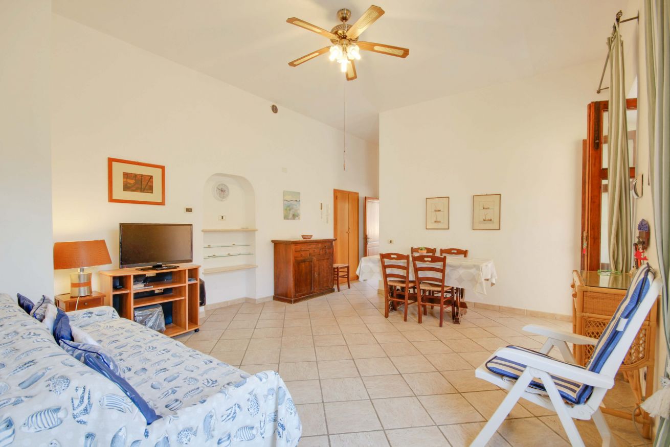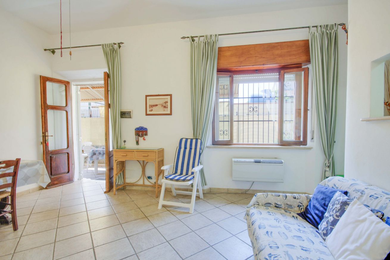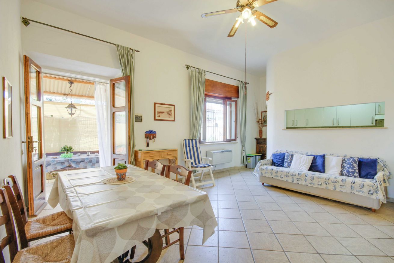 Accogliente appartamento a soli 150 metri dal mare situato al piano terra di una villetta bifamiliare, con spazio esterno perfetto per pranzi e cene all'aperto. All’interno dell’appartamento troverai un ampio soggiorno con un divano letto doppio, cucinotto con lavatrice, lavastoviglie, forno/fornelli a gas bombola e frigo/freezer, camera matrimoniale e bagno con doccia e finestra. La veranda coperta è arredata con tavolo e sedie, e include un barbecue in muratura perfetto per gustose grigliate in famiglia. L'appartamento è dotato di aria condizionata nel soggiorno e pale al soffitto sia nel soggiorno che nella camera da letto. Nonostante la mancanza di un parcheggio privato, ci sono ampie possibilità di parcheggio pubblico gratuito nella zona.
